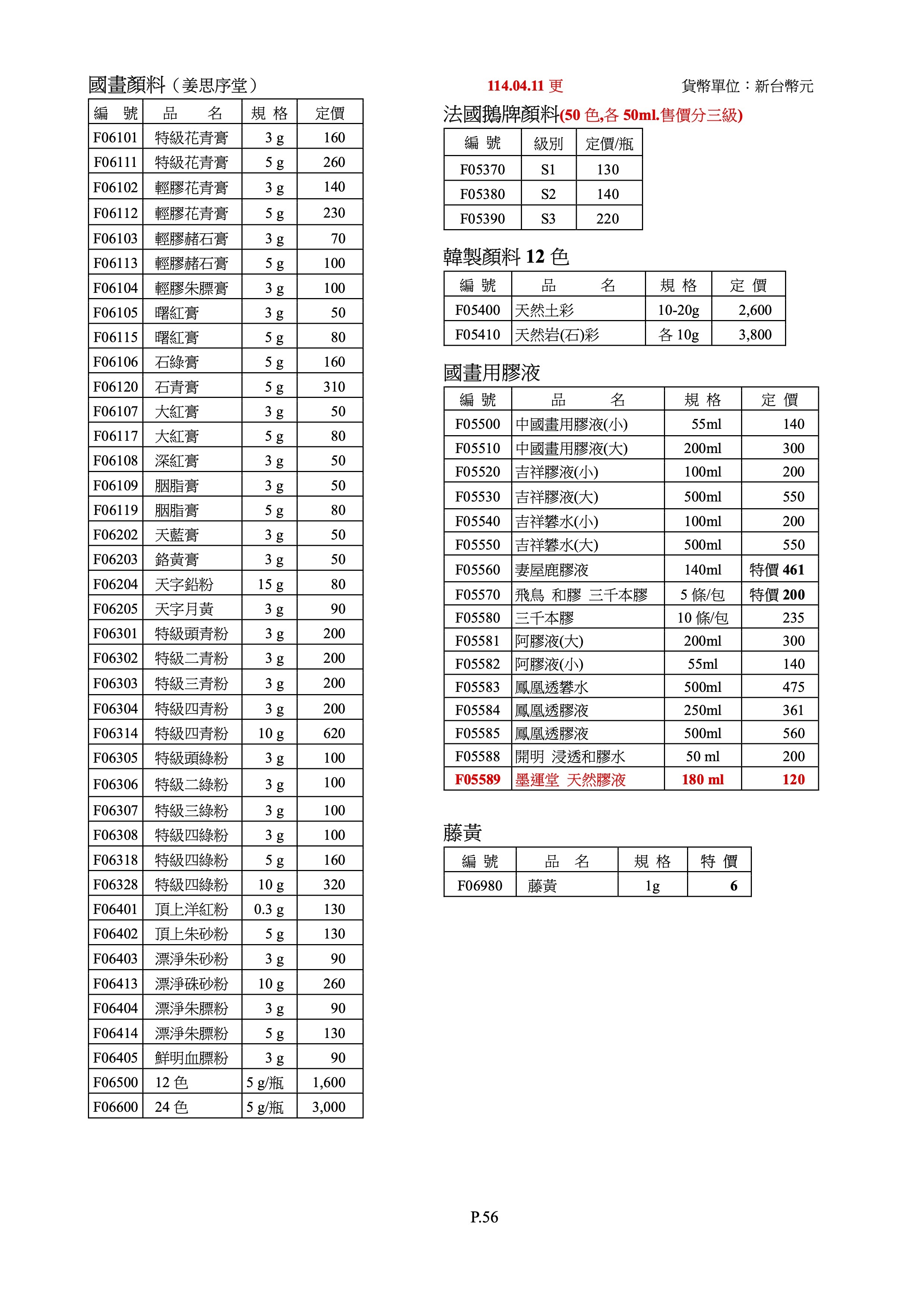 國畫顏料、國畫用膠液、墨運堂顏彩