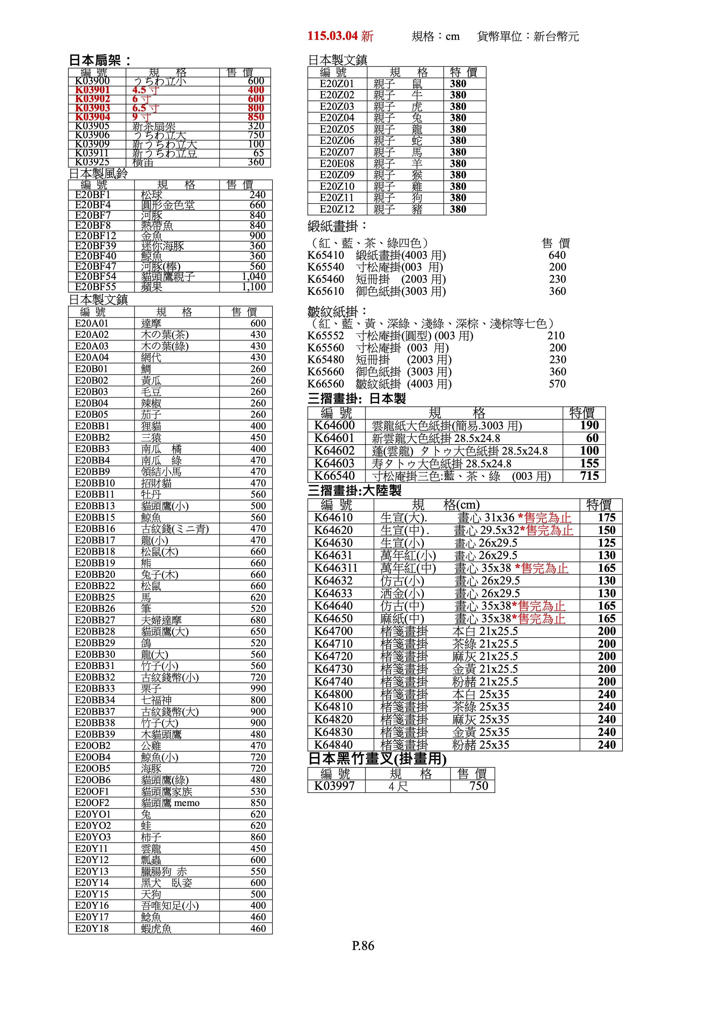 日本扇架、畫掛、畫叉、空白軸卷、畫用屏風墨運堂、風鈴、文鎮